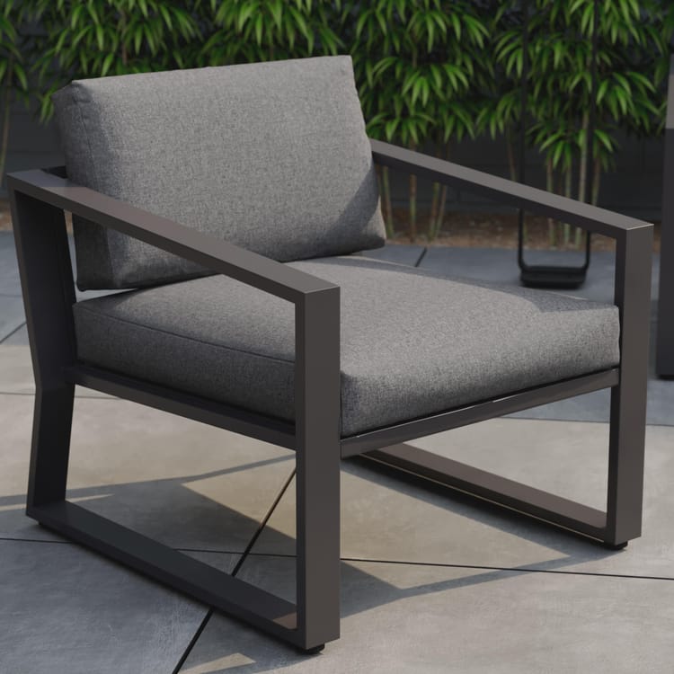 “Spędź miłe chwile wygodnie siedząc przy zestawie ogrodowym Lyra. Przeznaczony dla 4 osób, jest w całości wykonany z aluminium, co gwarantuje wysoką odporność na zmienne warunki pogodowe. Praktyczny zestaw ogrodowy Idealny do korzystania ze słonecznego dnia, niski zestaw ogrodowy Lyra pozwala wygodnie pomieścić 4 osoby. Składa się z dwuosobowej sofy, stolika kawowego oraz dwóch pojedynczych foteli. Aby zapewnić Ci wysoki komfort i łatwość w utrzymaniu, poduszki na siedziskach i oparciach wykonane są z poliestru i poddane zostały obróbce anty-UV oraz hydrofobowej, co spowalnia ich blaknięcie i pozwala natychmiast wytrzeć przypadkowe plamy. Idealny do wspólnego, ciepłego aperitifu w gronie rodziny lub przyjaciół, stolik kawowy ma kwadratowy blat pokryty estetyczną i łatwą do czyszczenia szybą. W całości wykonane z aluminium, stolik oraz konstrukcja sofy i foteli zapewniają długą żywotność oraz wysoką odporność na wilgoć i rdzę. Lekki materiał sprawia, że meble są łatwe do przesuwania. Nowoczesny zestaw Modny dzięki antracytowemu kolorowi, niski zestaw ogrodowy Lyra łatwo komponuje się, tworząc nowoczesny i przytulny efekt. Podobnie jak fotele i sofa, stolik opiera się na nogach w kształcie litery „U”, co nadaje mu geometryczny charakter i podkreśla współczesny wygląd zestawu. Połącz go z wysokim stolikiem z tej samej serii, aby stworzyć pełną strefę relaksu. Wskazówki dotyczące pielęgnacji Aby zachować meble w dobrym stanie, zaleca się przechowywanie ich zimą pod oddychającym pokrowcem Naterial podczas długich okresów nieużytkowania. Poduszki, które są całkowicie zdejmowane, powinny być chronione przed wilgocią, gdy nie są używane. Aluminium można łatwo czyścić za pomocą wilgotnej ściereczki i neutralnego środka czyszczącego.