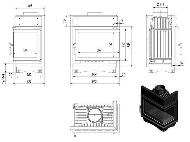 Wkład kominkowy MAJA 8 BS szyba po lewej 150 mm